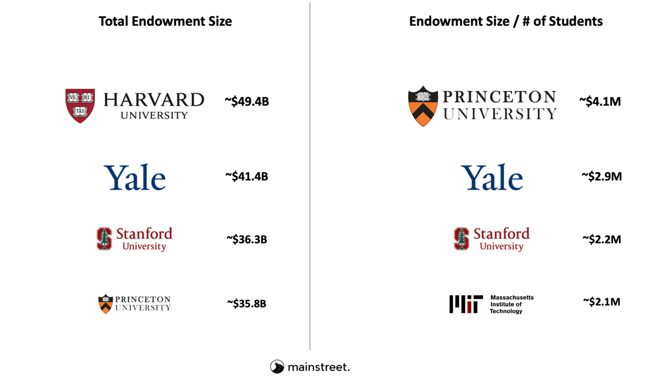 The slash to funding is timely considering the public’s growing perception of college as a business model rather than a learning model. College endowments saw a 7.7% gain in 2023 and assets allegedly grew to $839B.