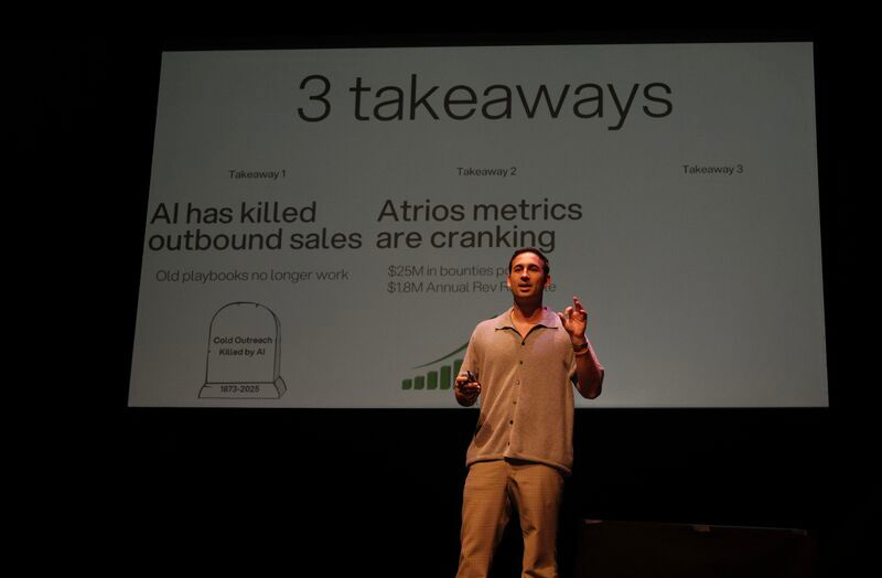 According to Taylor, within 12 weeks, speedrun took Atrios from $0M in run rate to $1M, from just Taylor working on it to a team of seven, and from no investor interest to over 250 inbound investors eager to join the cap table. The next item on his agenda is to transform the sales operating playbook from low conversion cold emails to warm introductions driven by people-first relationships.