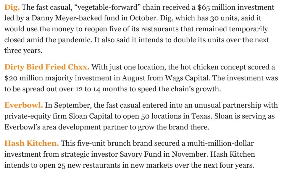 Here’s an example of some fast casual funding rounds from 2021/2022