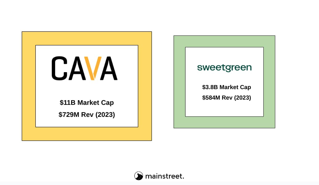Cava boasts a market cap nearly 3X the size of Sweetgreen even though revenue is just ~25% higher