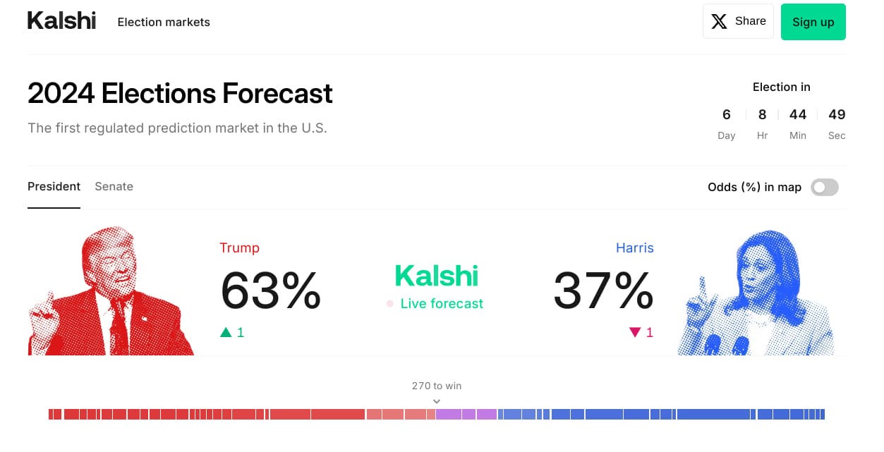 In other news, Robinhood just rolled out contracts to bet on the Presidential election next week.