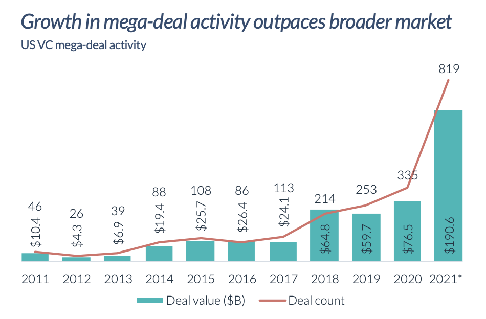 And in 2021, instead of VC investors receiving higher returns in exchange for less liquidity, they began to receive the best of both worlds: high returns and high liquidity. Dealmaking was surging, as IPOs / SPACs were ubiquitous due to the cheap capital the low rate environment created.