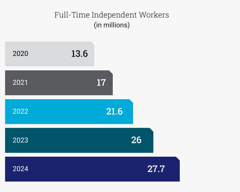 One of the most interesting aspects of the 2024 report is how quickly Americans are transitioning to the freelance game