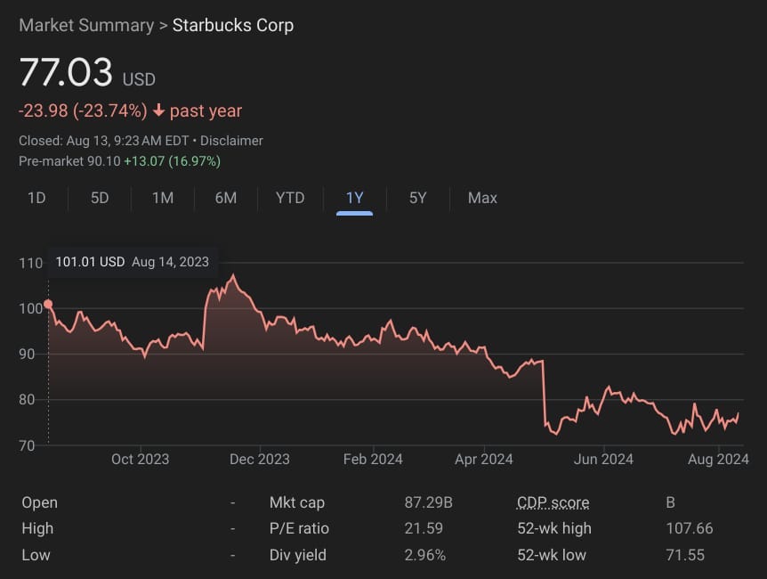 Just a few hours ago, however, Starbucks announced that Narasimhan would be stepping down as CEO, and Brian Niccol (Chipotle CEO) would be replacing him