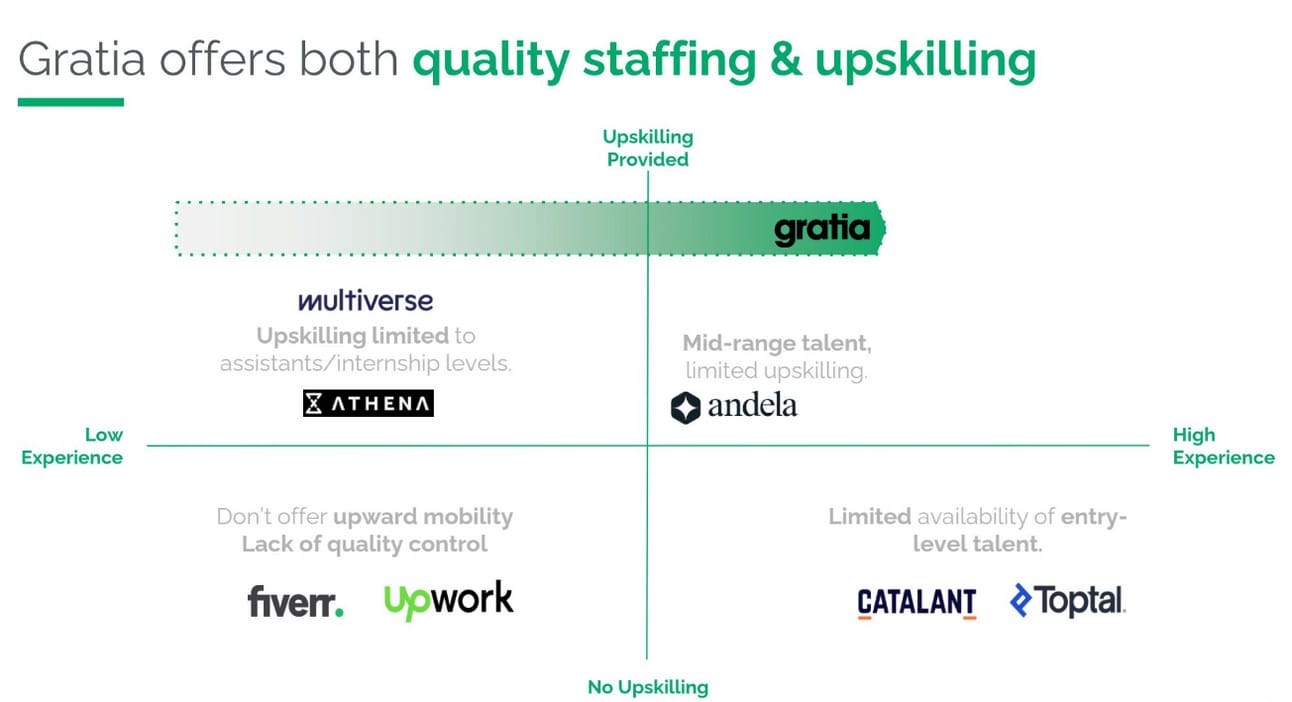 A unique feature that distinguishes Gratia from competitors is the laser focus on quality analysts + upskilling.