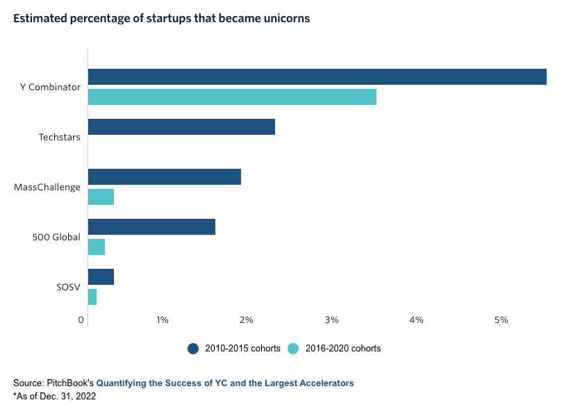 As seen in the visual above, YC’s 2010-2015 cohorts produced unicorns at a 5.4% rate…