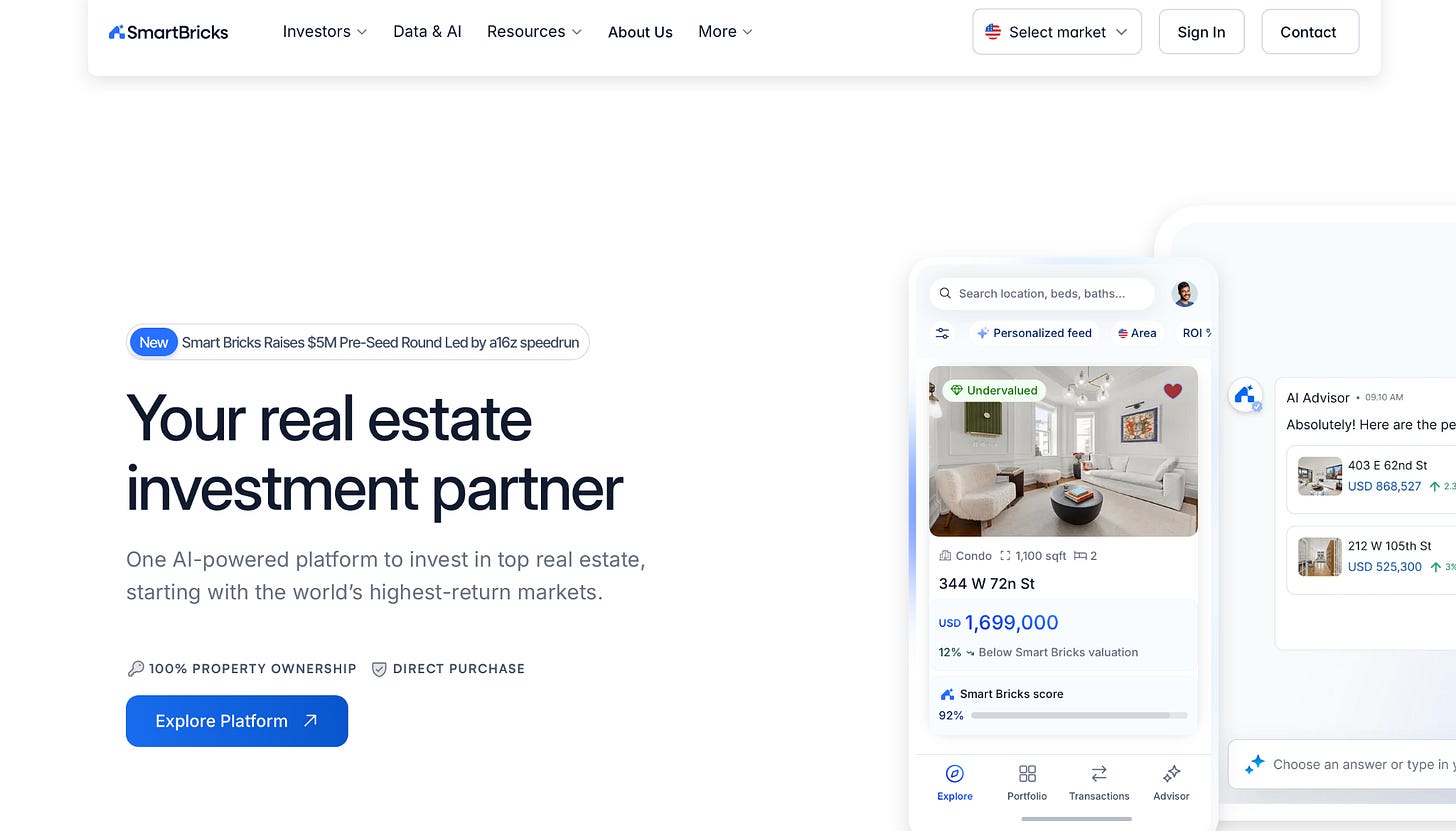 Company Overview: SmartBricks is an AI-powered real estate platform that provides a comprehensive intelligence layer for global real estate investing. The company built autonomous deal agents, underwriting agents, execution agents, and portfolio intelligence agents to increase ROI for real estate investors. After raising a $5M pre-seed round led by a16z speedrun, SmartBricks reached $12M in annualized run-rate revenue.