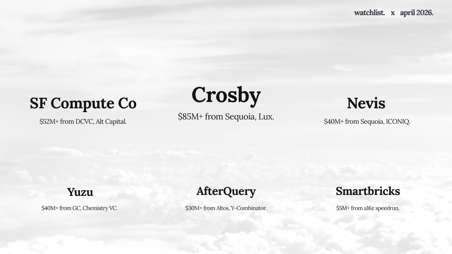 After less than two years of operations, Crosby is headlining today’s edition of Watchlist.